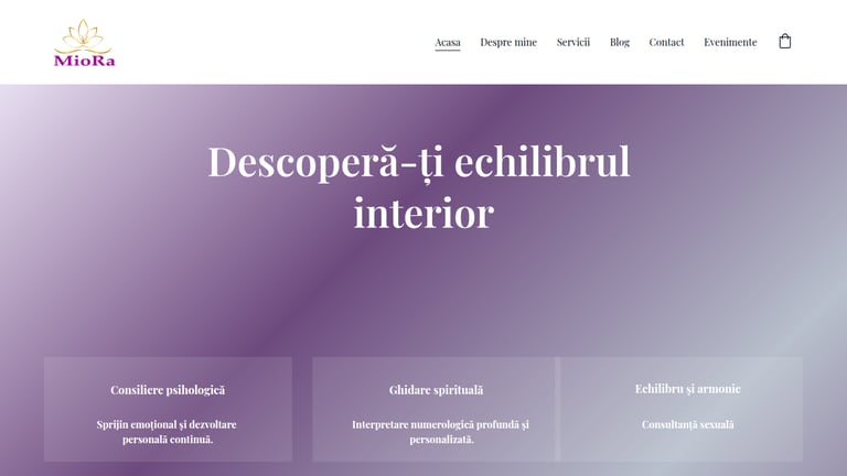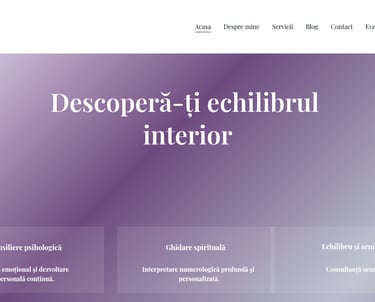 Website de prezentare dedicat psihologiei și vindecării interioare, construit cu un design calm și echilibrat, care reflectă armonia, profesionalismul și profunzimea muncii Mioarei Iacob.