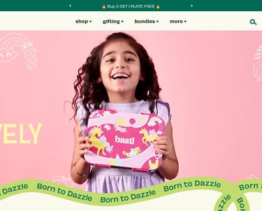 Website de comerț online pentru YourBasil — brand de produse pentru copii şi familii, cu design vibrant, uşor de navigat şi focus pe experienţă fluidă de shopping.