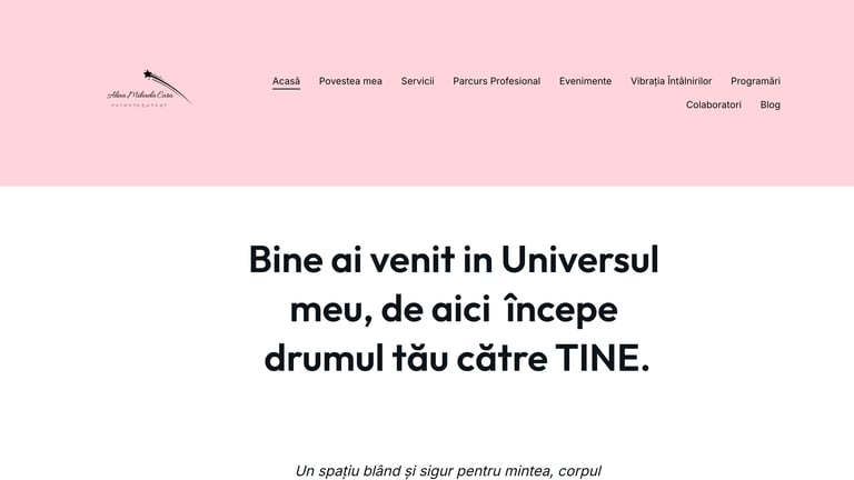 Un website elegant și minimalist pentru un cabinet de psihologie, conceput pentru a crea o conexiune autentică cu vizitatorii și pentru a transmite profesionalism, echilibru și încredere prin design și structură..