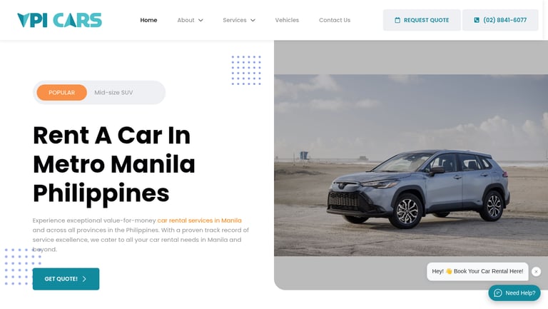 Website de prezentare pentru compania VPI Cars – serviciu de închirieri auto premium din Manila. Design modern și funcțional, cu accent pe claritate, experiență ușor de navigat și prezentare elegantă a flotei auto.